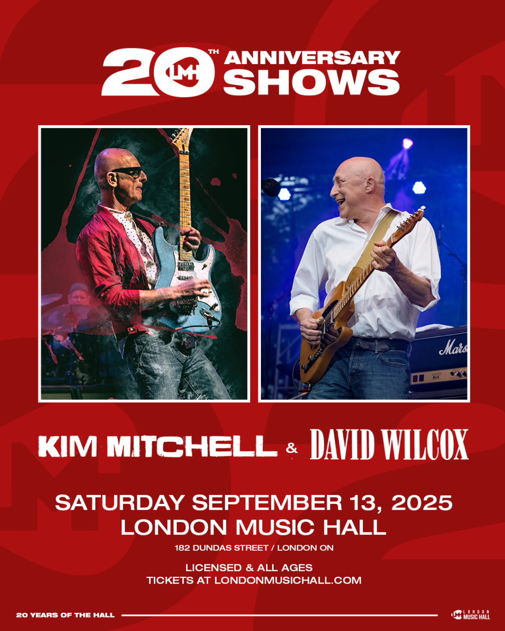 Two Canadian rock legends, one unforgettable night. Join us as Kim Mitchell and David Wilcox take the stage at London Music Hall for a high-energy performance celebrating 20 years of live music excellence.